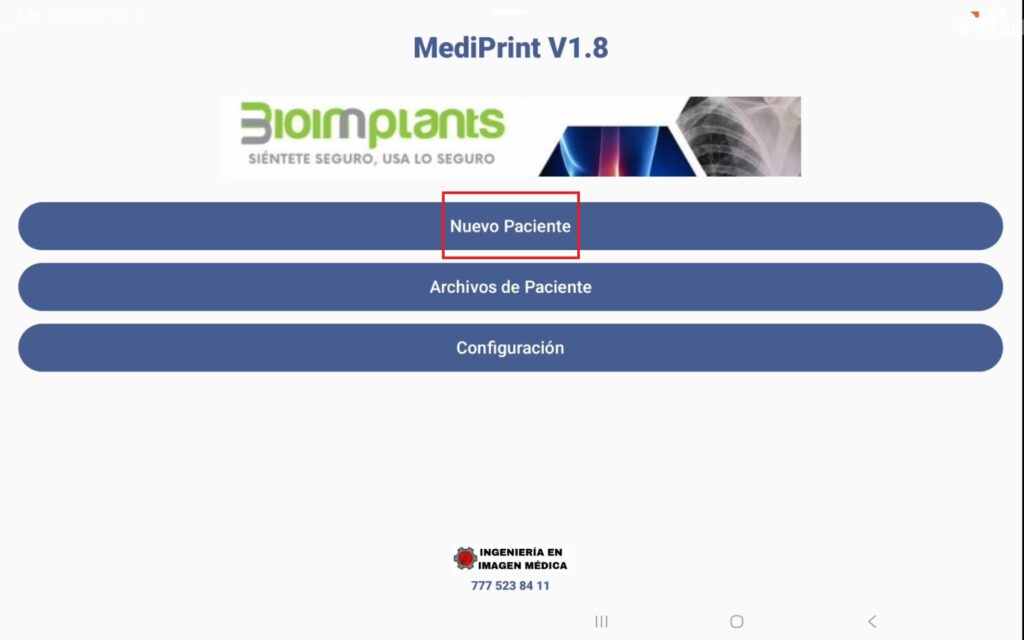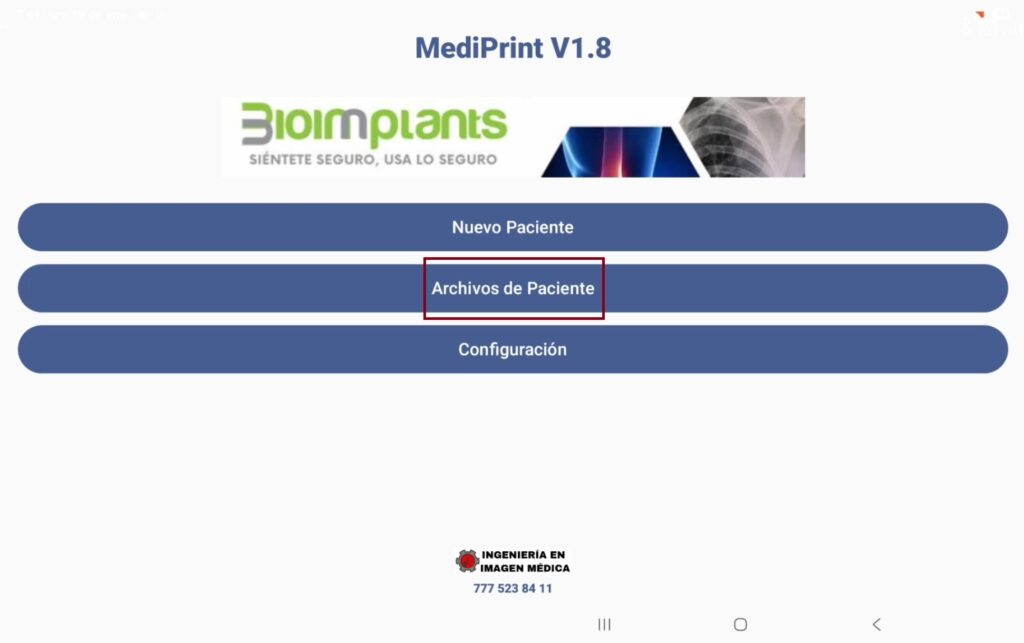Si nuevamente pulsamos el botón “hacia atrás” salimos al menú inicial, donde encontraremos el botón “Archivos de paciente”, al pulsarlo accedemos al apartado donde están guardados los PDF, de todas las cirugías.