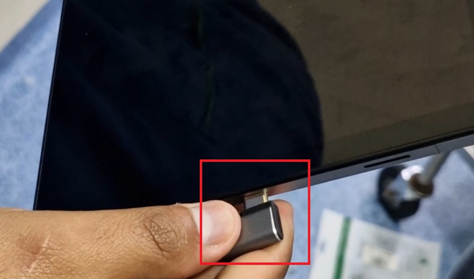 Finalmente con el puerto tipo “C” a 90 grados del conector USB se realiza la conexión a la tableta.