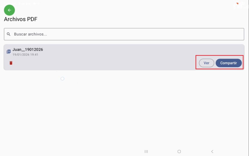 Con el botón “ver” podemos visualizar el archivo y con el botón “compartir” podemos desplegar la ventana para enviar el documento.